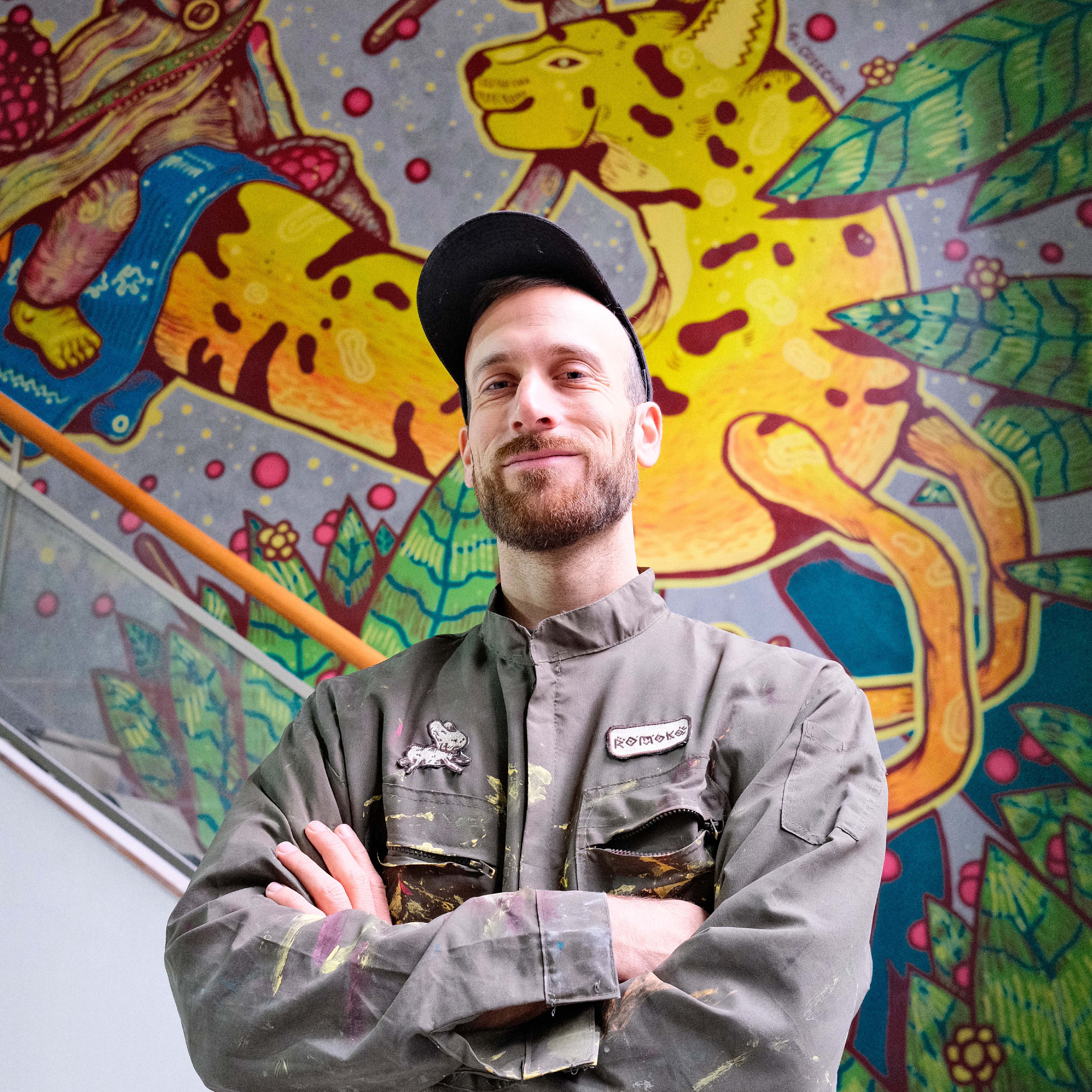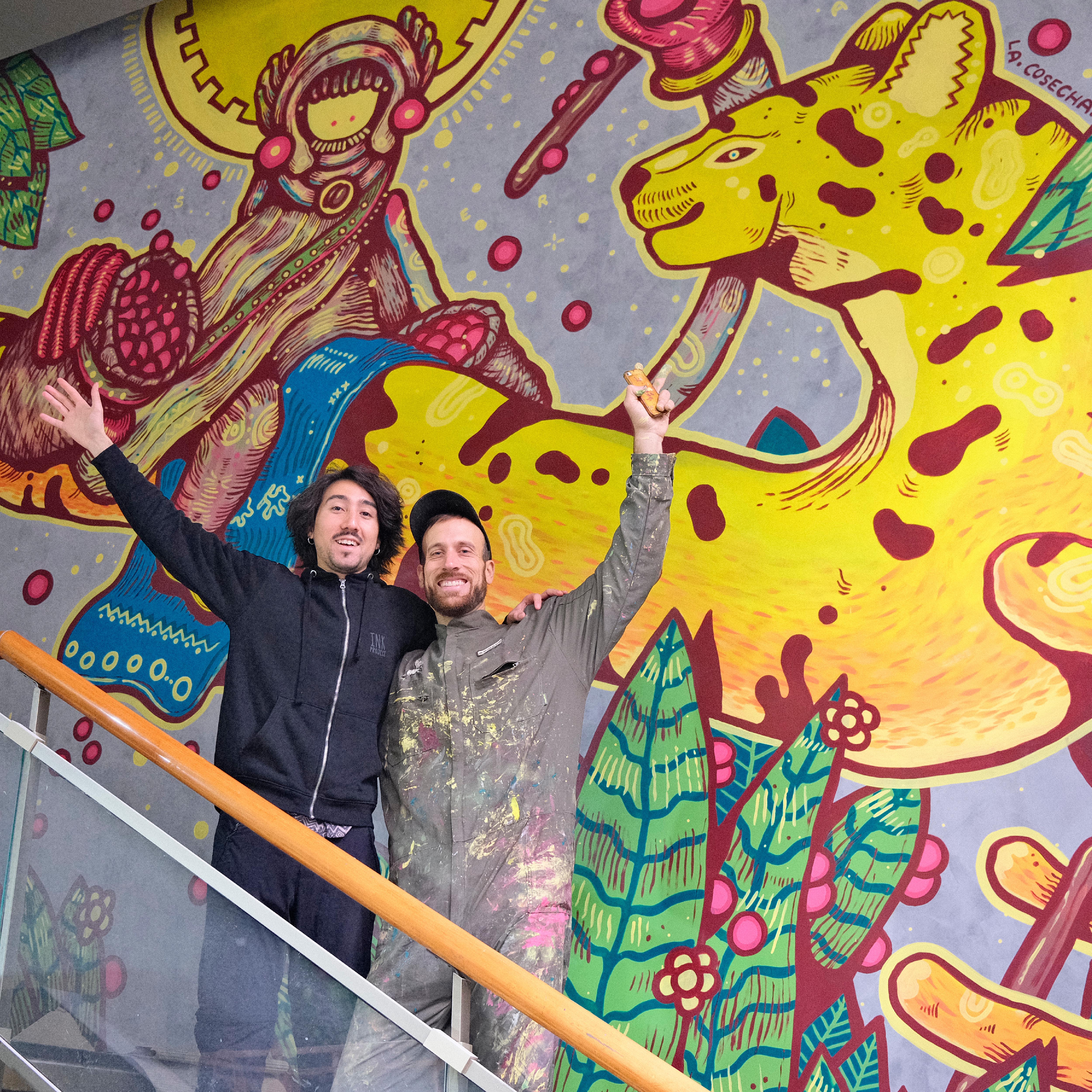 “LA COSECHA/El ENCUENTRO” is a double mural, consisting of two paintings facing each other. This Starbucks is the very first ever opened in Chile and at the same time right next to the Santa Lucía Hill, supposedly the foundation place of Santiago.